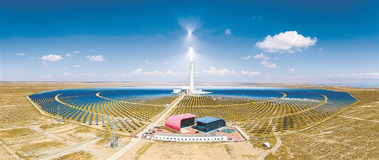 青海省海南藏族自治州共和县位于青藏高原东北缘,白天阳光普照长达8小时,太阳能等清洁能源产业的发展,在该县经济发展中稳居主导地位。图为中国电建共和光热发电项目实景之一。