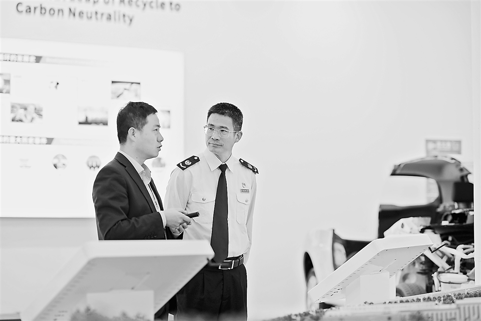 兰忠贵(右)到福安青美能源新材料有限公司开展辅导。