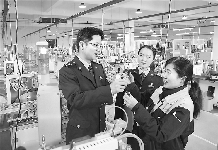 国家税务总局宜春经济技术开发区税务局组建合规经营辅导团队,走进辖区制造业企业开展税费政策宣传和涉税风险提醒,引导企业合规经营。图为税务干部近日在一家制造业企业车间走访,收集涉税建议。