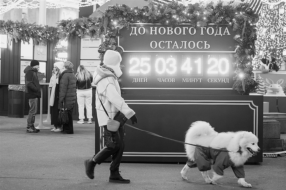 图为俄罗斯莫斯科的高尔基公园内,迎接2026年新年的时钟正在倒计时。