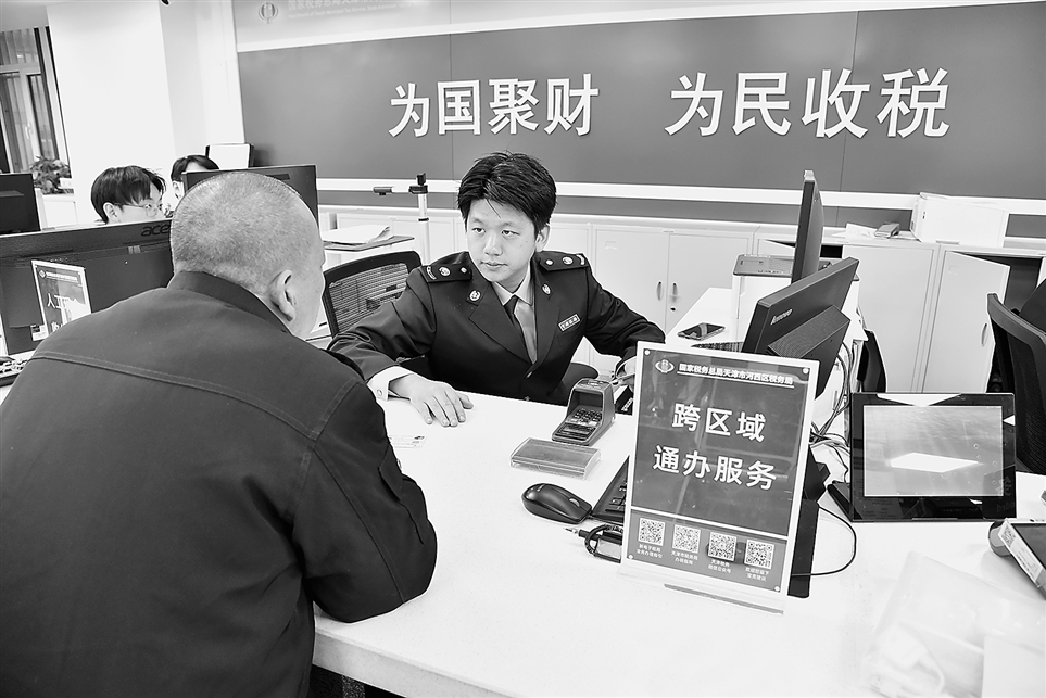 今年以来,税务部门积极推动全国统一大市场建设,优化跨区域通办服务,通过“征纳互动、税务联动”实现税务事项的异地快速处理。左图:国家税务总局天津市河西区税务局办税服务厅干部为纳税人办理跨区域税费业务。右图:国家税务总局营口市西市区税务局依托征纳互动平台,为异地纳税人办理跨区域涉税事项。 晓斌 张明宇 金姝含 摄