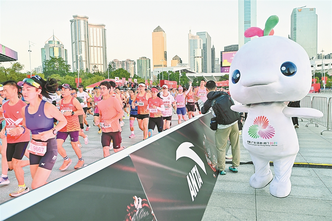 “十五五”规划建议提出,统筹推进群众体育和竞技体育发展,加快建设体育强国。 今年以来,各地体育赛事不断增多,由此带来的“赛事经济”产出也随之增加,拉动消费的乘数效应明显。国家税务总局增值税发票数据显示,今年1月—11月,体育会展服务、体育用品及器材零售同比分别增长29.7%、6.6%。同时,健康类消费持续成为消费新热点。1月—11月,保健辅助治疗器材零售、健康咨询服务销售收入同比分别增长14.1%、11.9%。图为12月21日举行的广州马拉松比赛。