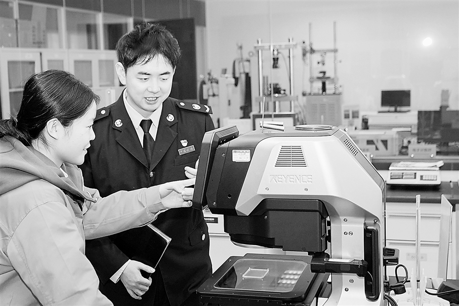 国家税务总局宁波前湾新区税务局聚焦国家级专精特新“小巨人”企业经营实际和涉税需求,推出定制化涉税合规辅导服务,开展涉税风险剖析和提示,助力企业合规经营。图为税务干部近日在一家科技企业智能化生产车间了解生产工艺。