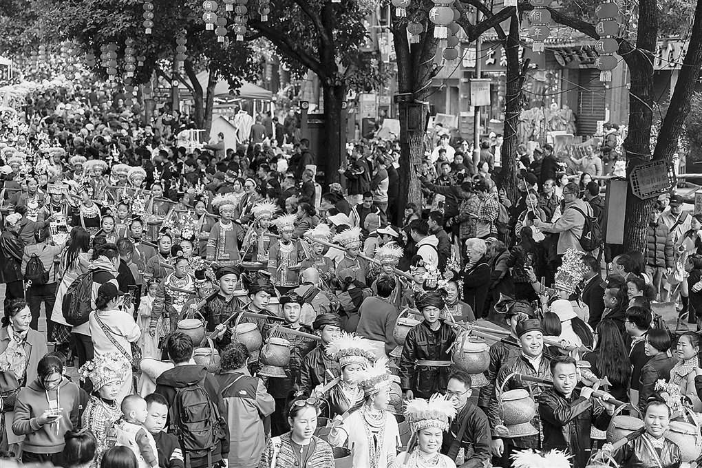 近日,贵州省黎平县肇兴镇侗寨人声鼎沸、热闹非凡。身着盛装的侗家儿女从各地赶回家乡,担着香禾糯、腌肉、腌鱼,伴着欢声笑语簇拥前行,在鼓楼坪前随着芦笙踏歌起舞,这正是侗年狂欢的盛景。 侗年是侗族家人团圆、庆贺丰收的节日,通常在农历十月下旬至十一月下旬举办,是国家级非物质文化遗产。2025中国·黎平侗年推出“欢乐侗乡幸福年”开年祭祀、“笙声不息颂盛世”等系列活动,并推出“侗宴八方·百家宴”,让各地游客与侗族儿女一起沉浸式体验侗年盛宴。 黎平县将侗年与文旅深度融合,将民族盛会转化为带动区域发展的有效引擎。2025年,肇兴景区门票收入1707.33万元,同比增长50.6%;接待游客144万余人次,同比增长39.99%。当地税务部门借助传统节日创新开展“税收宣传进侗寨 侗族大歌唱税法”特色活动,在肇兴侗寨设立“侗汉双语服务岗”“流动税务点”和“税费争议调解室”,为商户办理税费事项提供便利服务。