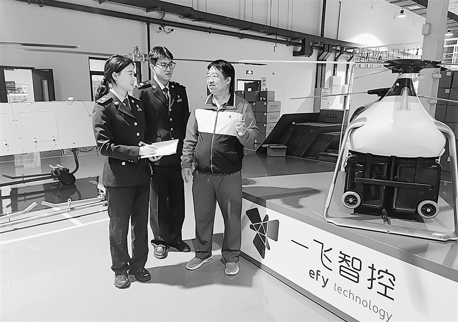 近日,国家税务总局天津经济技术开发区税务局青年干部到一飞智控(天津)科技有限公司调研,了解无人机生产经营情况,讲解出口退税相关税费政策。