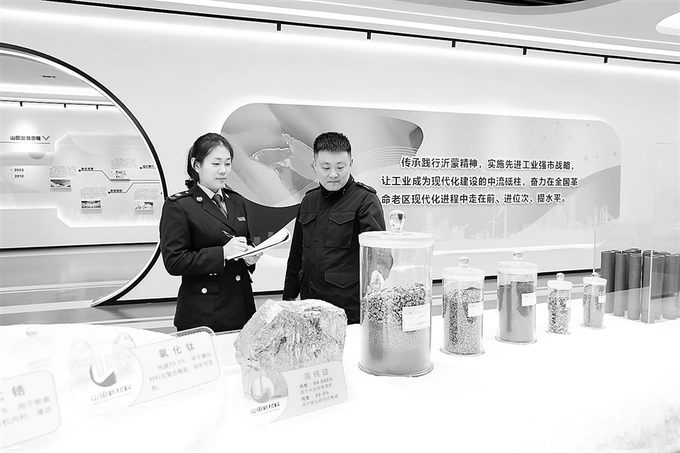 国家税务总局临沭县税务局开展科技企业研发费用加计扣除政策专题辅导,组织税务干部走进企业宣传政策,解疑释惑。图为税务干部近日在一家新材料企业了解原材料采购和账务处理情况,提醒企业防范涉税风险。