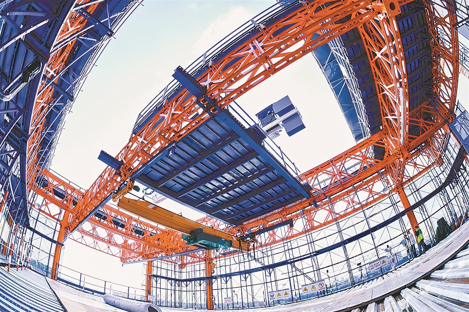 近年来,江苏省苏州市相城区大力发展智能建造,打造江苏省首个且唯一授牌的智能建造产业基地,建筑机器人可平均缩短15%的施工周期,降低设备和人力成本20%。图为中亿丰建设集团股份有限公司自主研发的智能建造装备“轻型造楼机”。