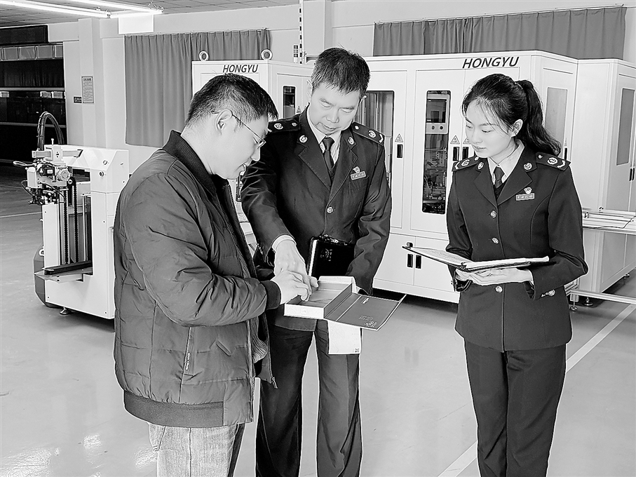 近期,国家税务总局青岛市即墨区税务局税务干部到重点制造业企业开展政策辅导与合规咨询服务。图为该局税务干部在一家包装科技有限公司生产车间调研。