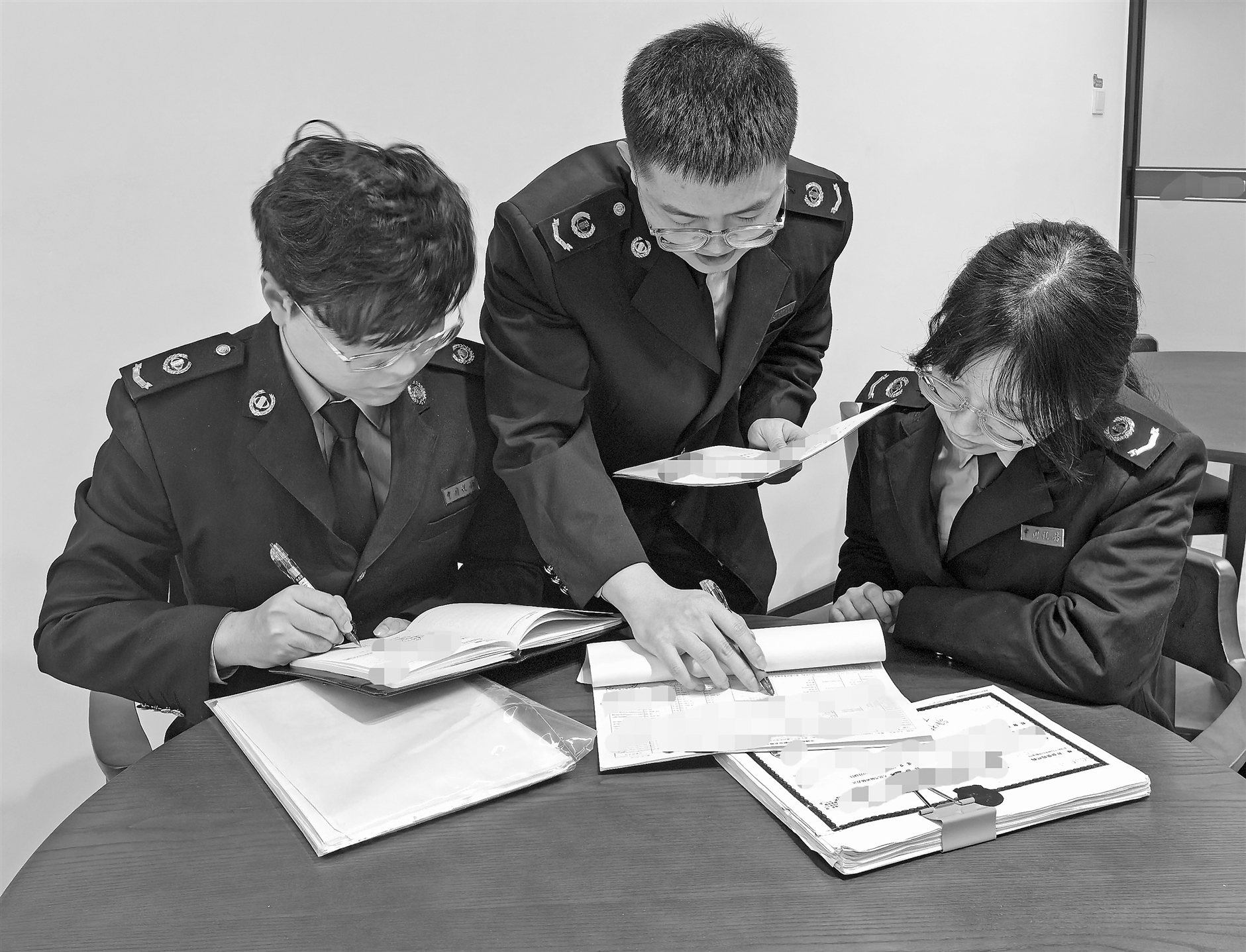 检查人员核查分析外调获取的涉案工程施工资料,寻找线索证据。