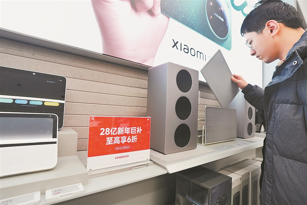 近日,商务部、国家发展改革委、国家税务总局、工业和信息化部等七部门联合印发通知,明确2026年将以提质增效为核心继续实施消费品以旧换新政策。 数据显示,2025年,全国以旧换新相关商品销售额超2.6万亿元,惠及超3.6亿人次。图为近日一名消费者在北京一家数码电器门店选购相关产品。