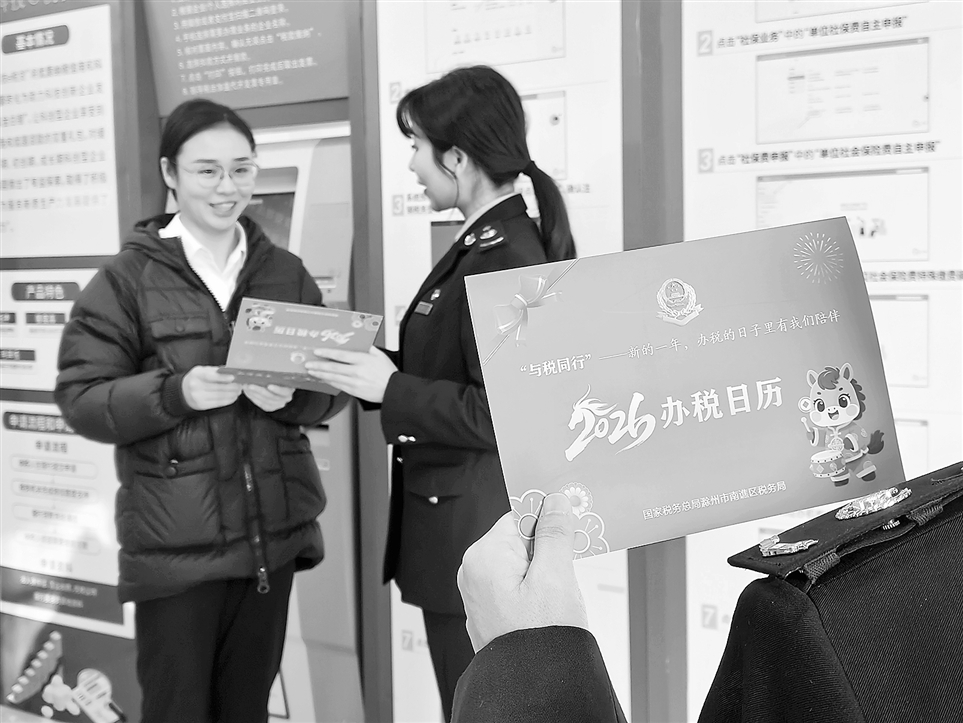 近期,国家税务总局滁州市南谯区税务局为纳税人送上“办税日历”,日历标记每月、每季度相关税种的申报纳税期限,提醒纳税人合理安排涉税业务办理时间。图为税务干部向纳税人讲解企业所得税年度汇算清缴时间。