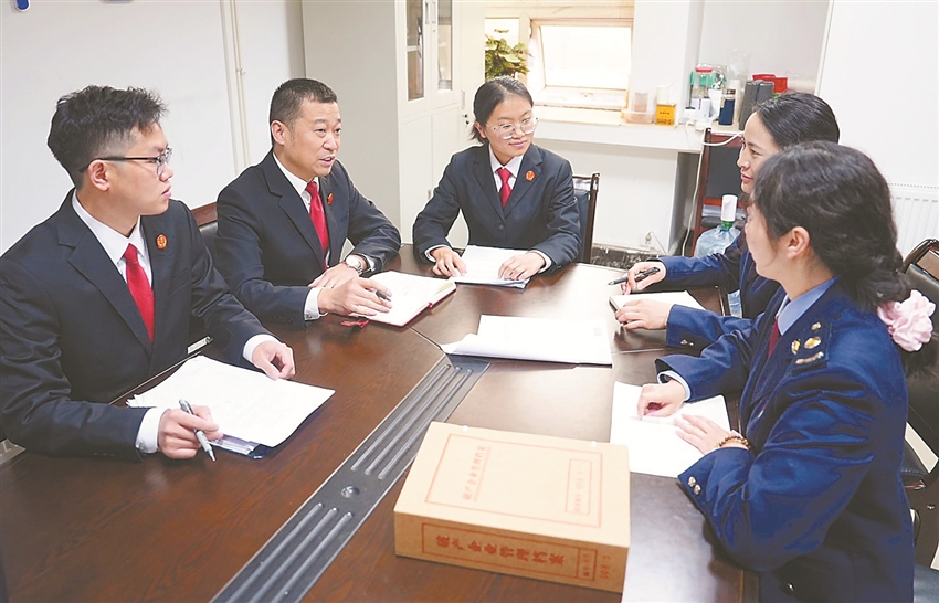 六盘水市钟山区税务局税务人员和法院工作人员研讨如何加强民事案件税费征缴协作。