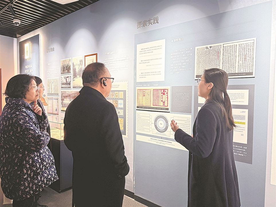 中国财税博物馆讲解员为参观者讲解印花税史。