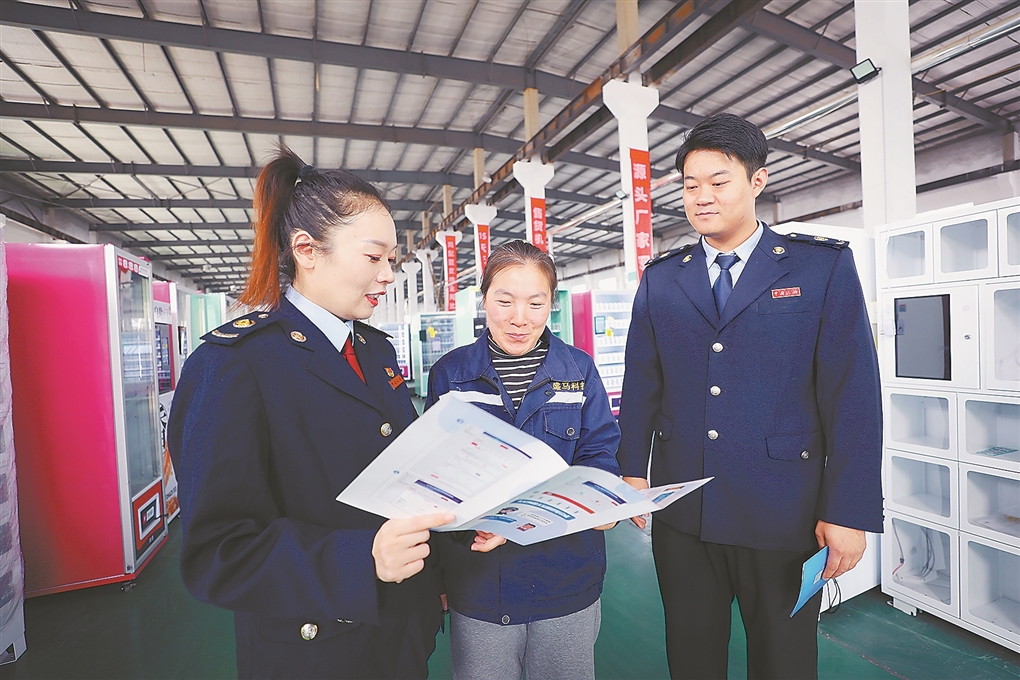 近日,国家税务总局隆尧县税务局干部走进河北盛马电子科技有限公司,了解该企业自动售卖机生产、销售及研发情况,为企业人员讲解研发费用加计扣除等税收政策。