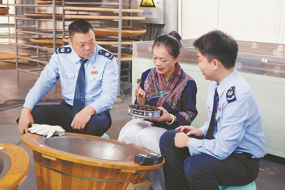 近日,国家税务总局五指山市税务局干部走进五指山妙自然茶业有限公司,了解企业生产经营情况,帮助企业梳理实务中出现的涉税要点。