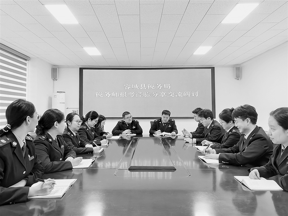近期,国家税务总局容城县税务局开展了一场税务师报考经验分享交流研讨,引导青年干部以考促学、学用结合,切实提升履职能力。