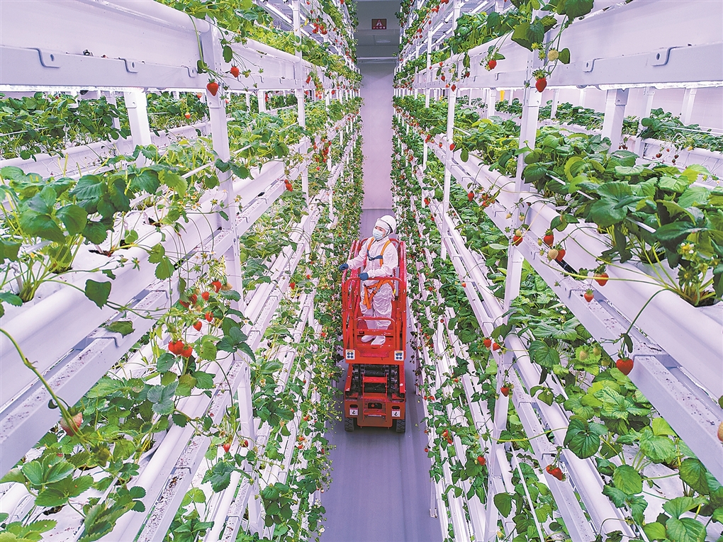 “十五五”规划建议指出,“深入推进数字中国建设”“促进实体经济和数字经济深度融合”。 国家税务总局增值税发票数据显示,2025年,数字产品制造业销售收入同比增长9.4%;制造业企业采购数字技术金额同比增长10.4%,增速较上年加快3.5个百分点,其中汽车制造业、计算机通信设备制造业采购数字技术金额同比分别增长24.5%和11.8%,数字经济与实体经济融合不断加深。图为在四川省成都市温江区中农·超级植物工厂内,工作人员运用垂直升降机进行草莓管护作业。