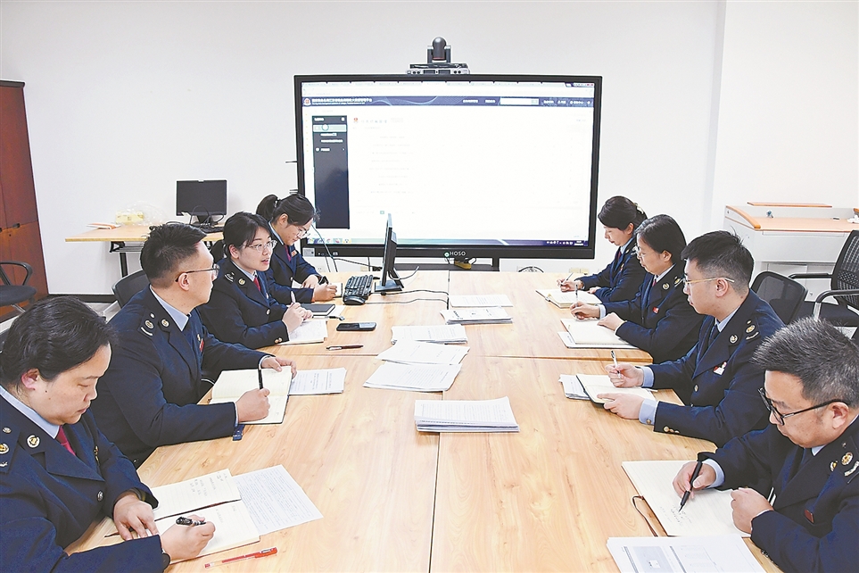 国家税务总局南通市税务局督察内审部门工作人员通过江苏省任务统筹工具,查看各基层单位内部风险防控指标核查反馈情况。
