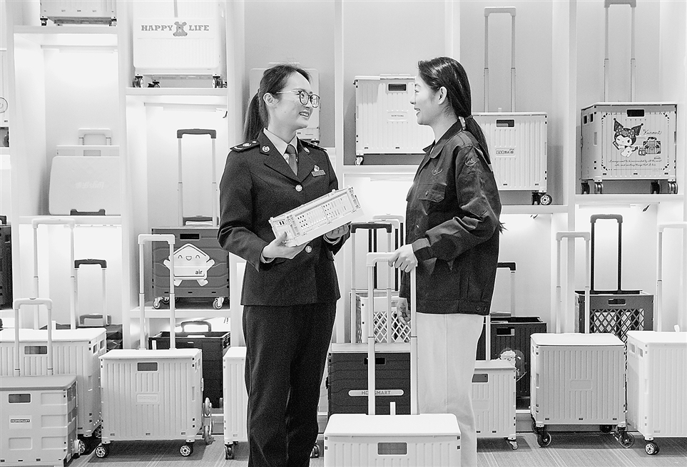 近期,国家税务总局象山县税务局开展“送政策、解难题、促发展”走访活动,组织税务干部走进制造业企业了解生产经营情况,现场解答涉税疑难问题。图为税务干部日前在一家塑胶制品公司了解销售情况并宣传相关税收政策。