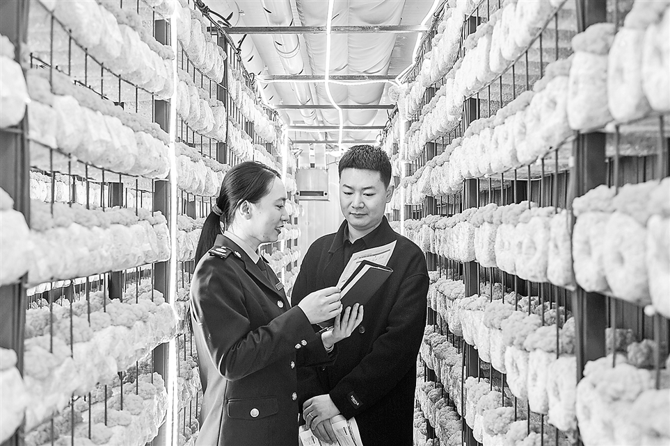临近春节,鼎信阳光(青岛)生物科技有限公司的金耳迎来销售旺季。税务干部走进公司智慧菌菇方舱,了解企业生产经营情况,为企业化解办税难题。