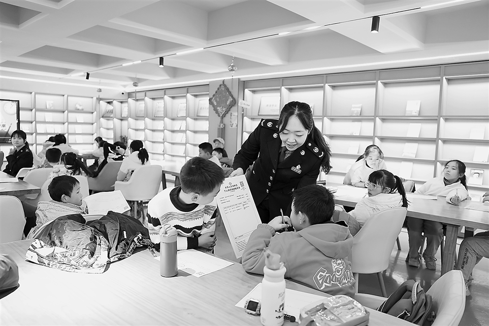 寒假期间,重庆团市委组织开展“假期公益托管营”活动,与税务部门联合将税法宣传纳入公益托管课程计划。图为国家税务总局重庆市开州区税务局干部近日在公益托管营为小朋友讲解发票知识,引导孩子们树立“消费后主动索要发票”的意识。