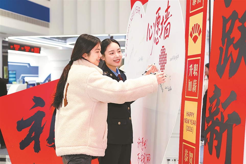 春节临近,各地办税服务厅干部贴对联、粘窗花、挂灯笼,把办税服务厅装扮得更加温馨喜庆。左图:国家税务总局慈溪市税务局干部搭建春节心愿墙,邀请纳税人缴费人共同许下对新一年的美好憧憬。右图:国家税务总局宝鸡市高新技术产业开发区税务局干部悬挂红灯笼,迎接春节的到来。