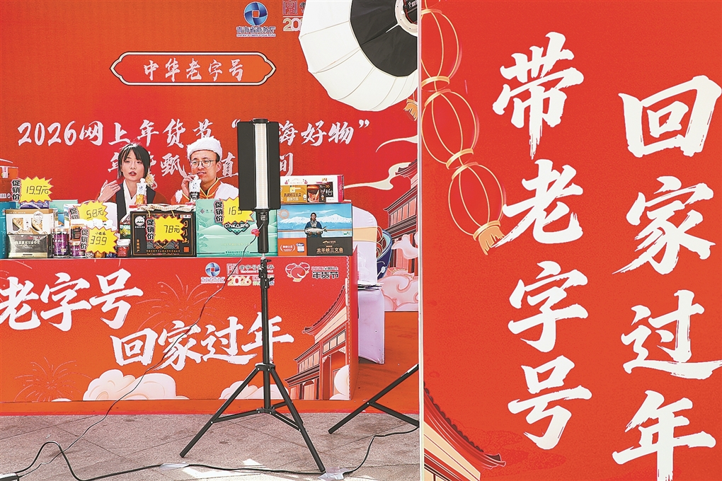 2026全国网上年货节于1月19日—3月4日举行。年货节启动以来,各地广泛运用云端逛展、直播推介、数字互动体验等新形式,同步联动线下商圈、文旅景区等场景,搭建了线上线下融合的年货消费矩阵,点燃新春消费热潮。图为2026青海省老字号嘉年华·新春年货季暨网上年货节现场,千余种特色老字号年货供民众“一站式”选购。