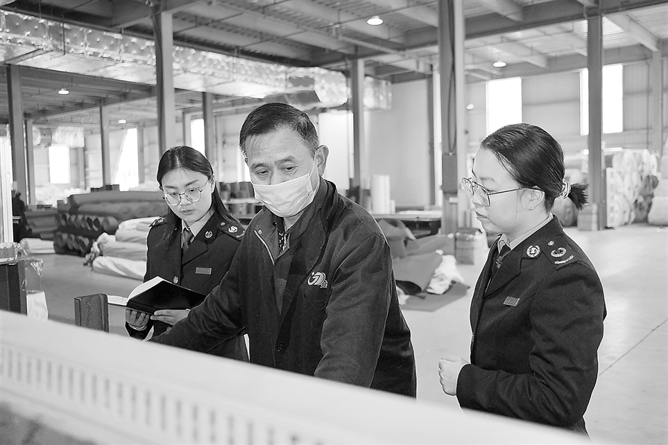 国家税务总局来安县税务局近期组织业务骨干开展增值税法及其实施条例实施情况调研,了解企业相关意见建议。图为税务干部在一家制造企业了解税法落实情况,解答企业负责人提出的业务疑难问题。