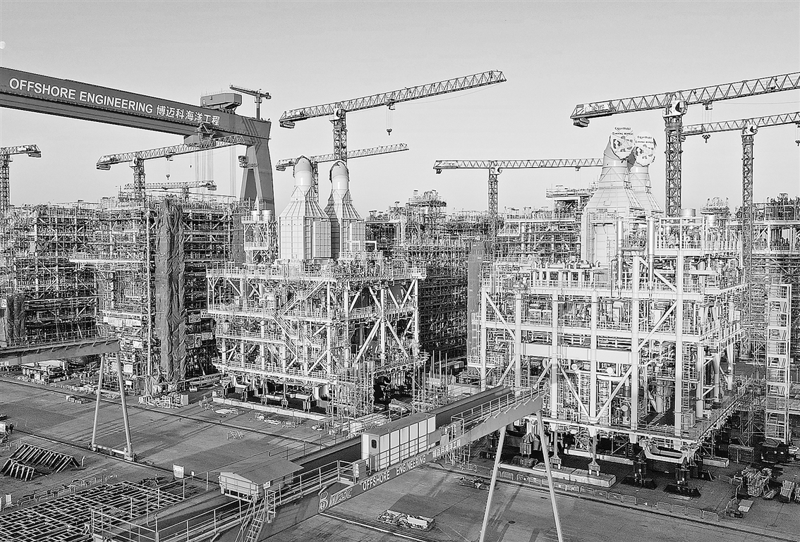 天津博迈科海洋工程有限公司滨海厂区内,巨型龙门吊巍峨矗立,钢铁吊臂精准起落,一座座海工模块拔地而起,尽显世界级海工装备制造的磅礴气场。 天津博迈科海洋工程有限公司扎根天津滨海新区二十余载,专注于为国际能源客户提供高端模块化解决方案。企业将海上油气生产平台、液化天然气工厂等大型设施,“解构”为数十米高的巨型模块,依托重型龙门吊完成组装与装船,整体运往海外进行总装集成,堪称“钢铁积木”的全球制造者。该公司近期签署了一份金额逾2亿美元的FPSO(海上浮式生产储卸油船)项目合同,项目建成后将部署于圭亚那海域,进一步提高了企业在国际海工装备市场的服务能力。 作为海工行业重点企业,博迈科的稳健发展离不开税务部门的精准服务。从跨境业务税务合规指引,到日常账务风险预警,再到出口退税流程优化,税务部门主动靠前,帮助企业规范财务核算,规避跨国经营中的涉税风险,为企业出海提供了有力支撑。