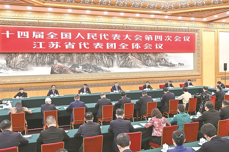 3月5日下午,中共中央总书记、国家主席、中央军委主席习近平参加他所在的十四届全国人大四次会议江苏代表团审议。