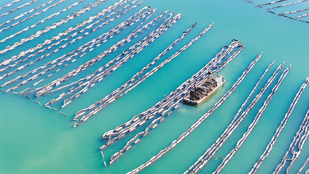 牡蛎采收时节,海面上浮标成列、舟楫往来,养殖户们驾船穿梭,撬壳、取肉、分拣,娴熟的动作一气呵成。在宁波市奉化区莼湖街道缪家村塘头自然村,3000多亩养殖海域构成了村民的“海上粮仓”。该村家家户户采用特色“绳条养殖法”,一条40米长的牡蛎养殖绳可培育320株牡蛎苗。得益于优越的养殖环境和气候,今年当地牡蛎品质再攀新高,市场零售价稳定在每斤30元—35元,年总收入超3000万元。据了解,采收季将持续到4月—5月。 国家税务总局宁波市奉化区税务局聚焦当地养殖产业发展需求,主动对接养殖户及相关产销合作社,梳理推送农产品自产自销免征增值税等政策,对发票开具、纳税申报等农户重点关注的涉税问题,提供针对性的宣传辅导,引导水产养殖行业健康发展。