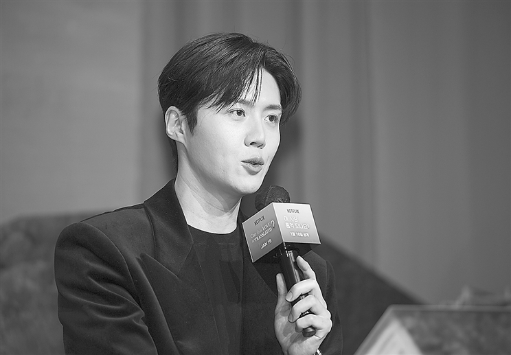 近日,韩星金宣虎被指控通过设立“一人公司”转移演艺收入并逃税。图为金宣虎出席网飞新剧《爱情怎么翻译》的记者会。