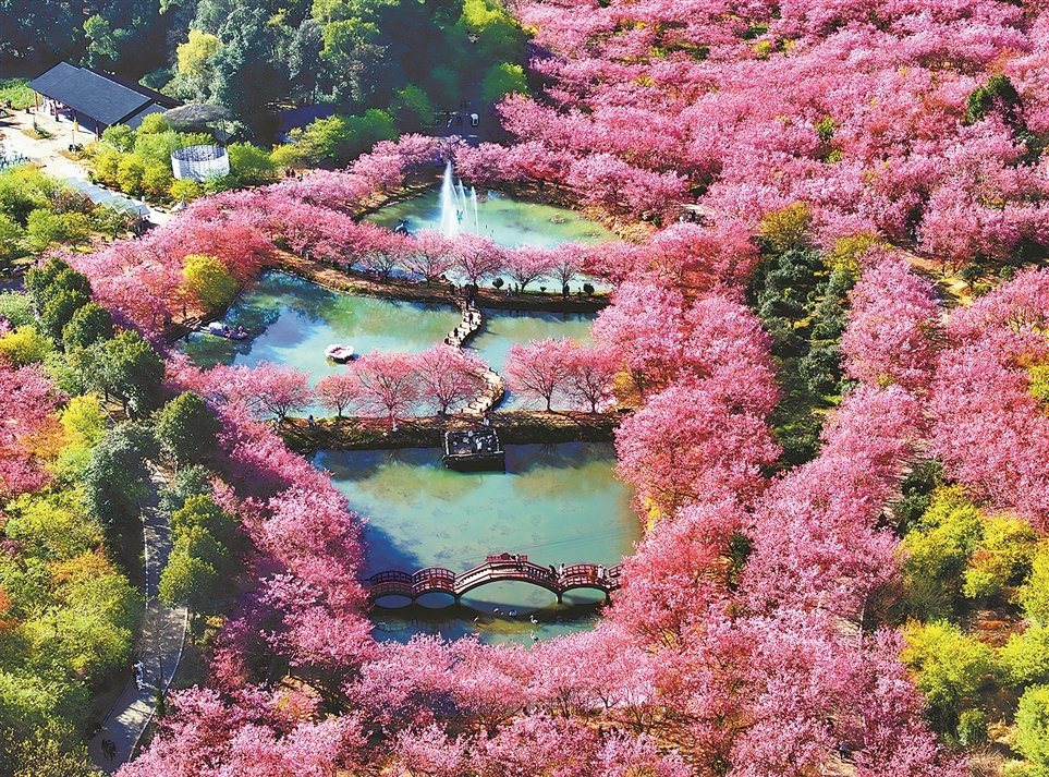 春日晴好,万物复苏,湖南省常宁市的百万樱花园迎来最佳观赏季。这座占地5360亩的园区,种植着台湾山樱、牡丹樱、香水樱等樱花100余万株。目前,园区开启了“日场+夜场”模式,白天赏樱花、夜晚观铁花,为游客带来全天候的春日浪漫。据统计,今年樱花季,园区已累计接待游客超30万人次,带动区域旅游营业收入超1000万元,近期日均游客量超过1万人次。 国家税务总局常宁市税务局开展“樱下税宣”活动,在景区布设宣传展台,现场辅导游客办理个人所得税汇算、体验“非接触式”办税缴费流程,开展一对一税费政策答疑约200人次。同时,上门摸排周边吃、住、行、购、娱等行业个体工商户情况,引导多家个体工商户完成税务登记。