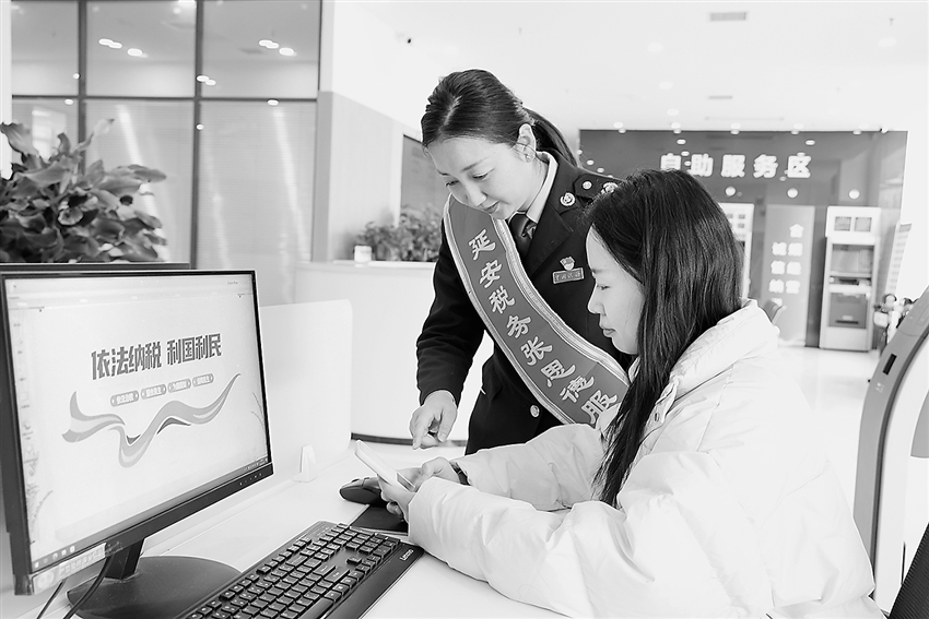 从3月21日起,纳税人通过个人所得税App办理个人所得税年度汇算,不再需要提前预约。各地税务部门在办税服务厅设置专岗专人为纳税人办理个税汇算提供咨询服务。左图:国家税务总局青岛市市北区税务局办税服务厅干部为纳税人提供一对一辅导,帮助纳税人正确申报。右图:国家税务总局黄龙县税务局“张思德服务队”的工作人员为纳税人演示个税App操作流程。 冯国滨 万云军 岭之南 王晓敏 摄