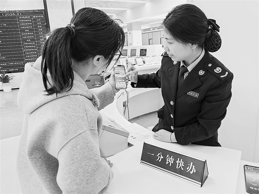 国家税务总局德安县税务局在办税服务厅设置“一分钟快办”专窗,组织税务干部围绕个税汇算的操作要点,为纳税人提供辅导。图为税务干部近日辅导一名纳税人核对收入数据,确保规范填报。