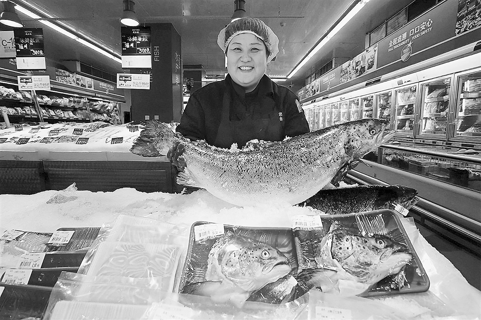 新疆产三文鱼进入湖北省宜昌市超市售卖。