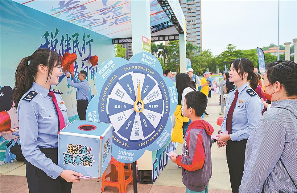 在最近举办的“美丽佛山 一路向前”2026佛山50公里徒步活动现场,国家税务总局佛山市税务局设置税法宣传点,通过趣味问答、互动游戏等方式向市民宣传税费政策。