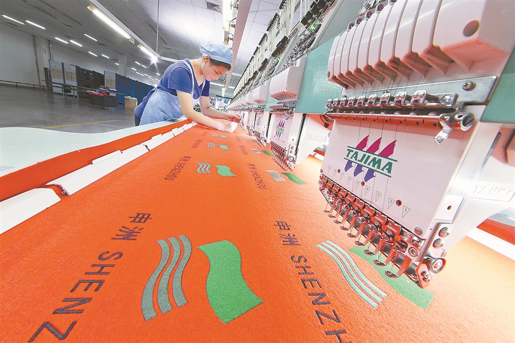 在申洲国际控股集团有限公司自动化工厂,工人正在刺绣。