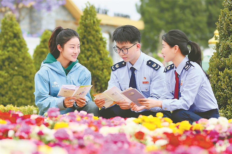 近日,国家税务总局淄博市博山区税务局干部走进景区进行税法宣传。