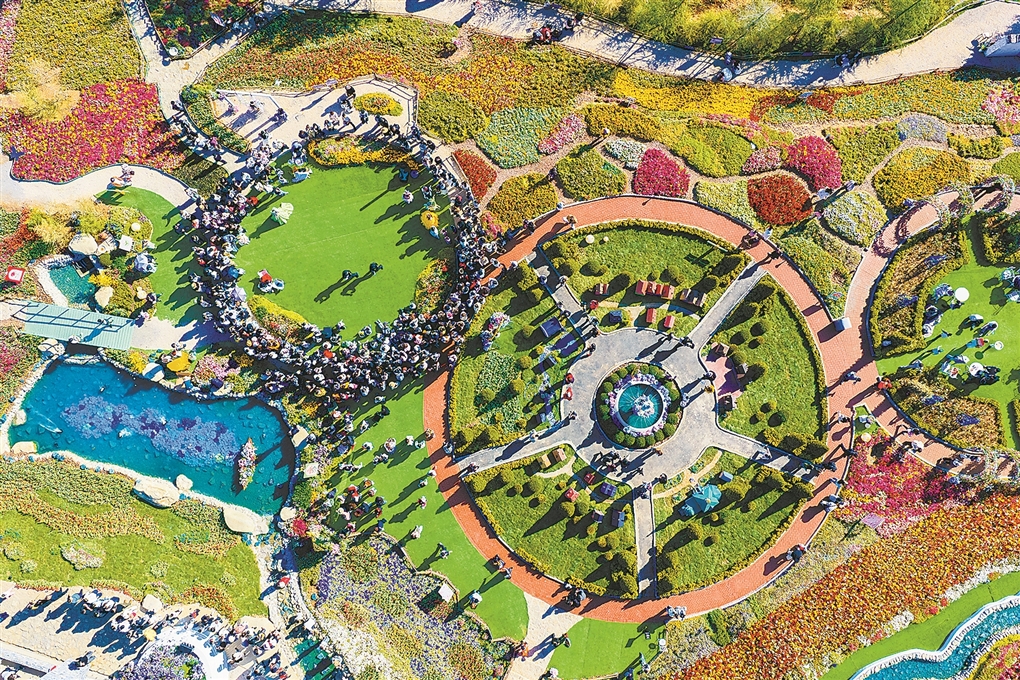 芳菲四月,山东红叶柿岩旅游区的云崖花园里百万株郁金香绽放。