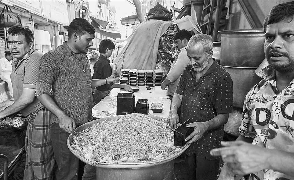 2025年11月,印度海得拉巴比尔亚尼菜餐厅在接受税务检查时瞒报收入,使该国各地餐厅大规模逃税的真相陆续浮出水面。图为印度孟买的餐饮工人正在打包比尔亚尼菜。