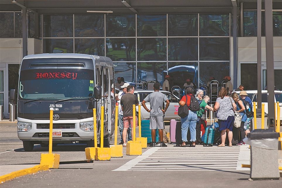 图为游客抵达牙买加第二大城市蒙特哥贝的唐纳德·桑斯特国际机场。该市位于牙买加岛西北部沿海,是加勒比海地区著名的旅游度假胜地。