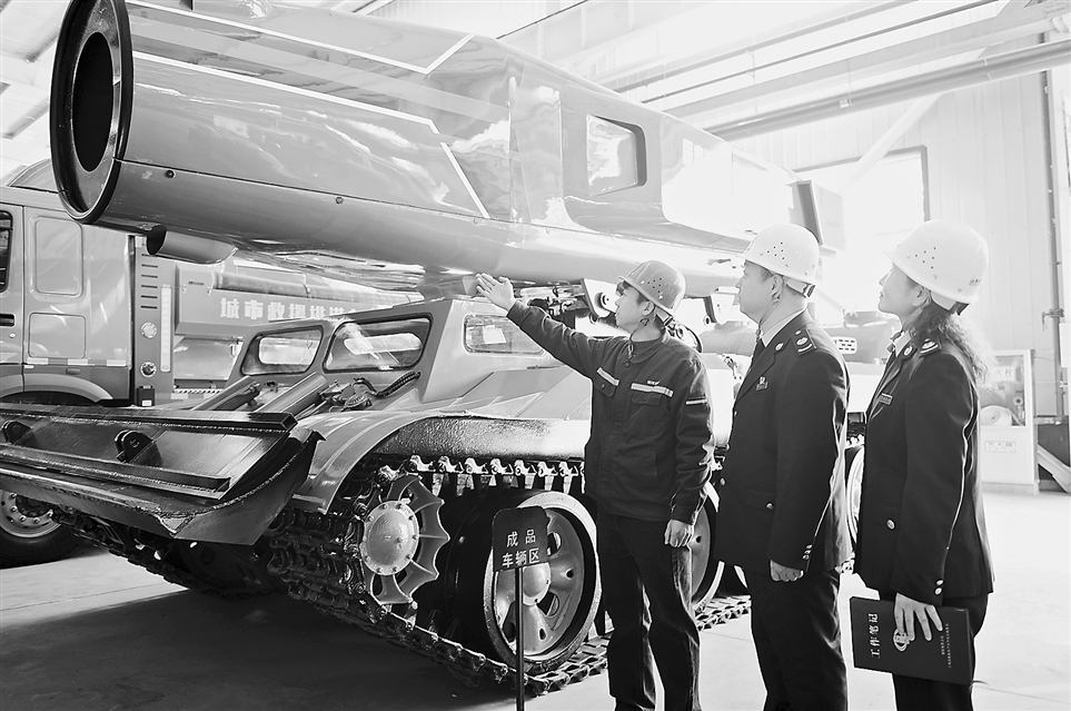 近日,国家税务总局宝鸡高新技术产业开发区税务局开展创新研发企业专项调研,税务干部上门辅导企业合规适用研发费用加计扣除政策。图为税务干部在陕西银河消防科技装备股份有限公司调研。