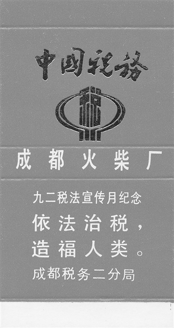 成都市税务局第二直属分局为纪念首个全国税收宣传月推出的税宣火花。