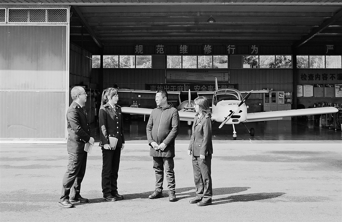 崇州市税务局干部在四川豪芸通用航空有限公司开展税法宣传。