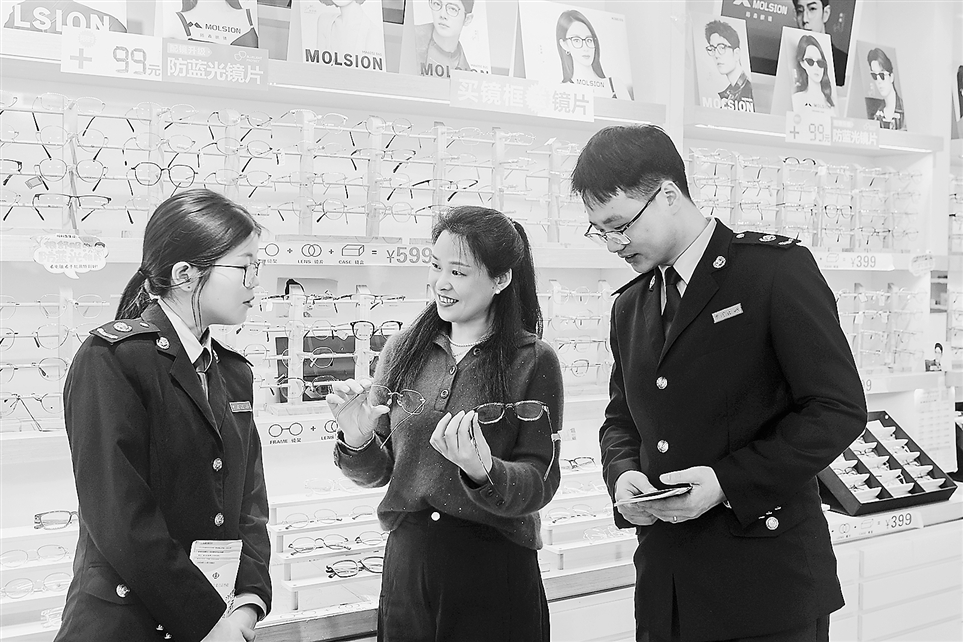 近日,国家税务总局无为市税务局干部走进辖区大型商场,开展“税费政策进商圈”活动,为商家讲解如何合规开具发票。