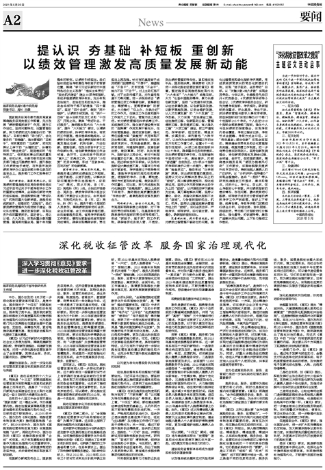 中办、国办印发的《关于进一步深化税收征管改革的意见》,是党中央、国务院关于“十四五”时期税收征管改革的重要制度安排和总体规划,既体现了党中央、国务院对新发展阶段税收工作高度重视和对推进税收治理现代化的科学指导,也为税务部门
