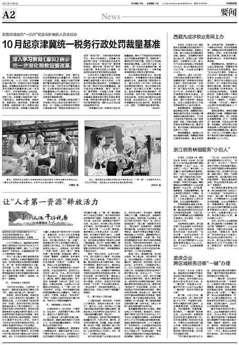 本报讯 国家税务总局北京市税务局、天津市税务局、河北省税务局联合发布公告,10月1日起,在京津冀区域内施行统一的税务行政处罚裁量基准。京津冀各级税务机关实施的各项处罚事项在裁量标准上统一采用“一把尺”,切实保护纳税人合法权