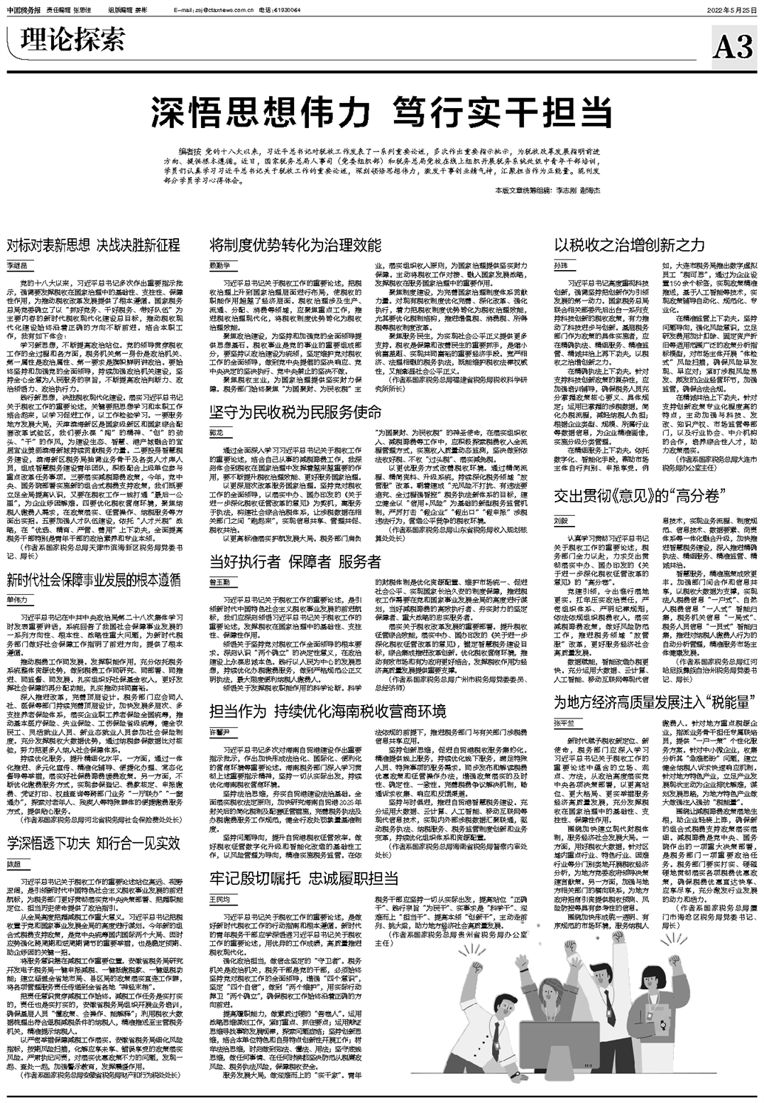 习近平总书记多次对海南自贸港建设作出重要指示批示,作出加快形成法治化、国际化、便利化的营商环境等重要论述。海南税务部门深入学习贯彻上述重要指示精神,坚持一切从实际出发,持续优化海南税收营商环境。
