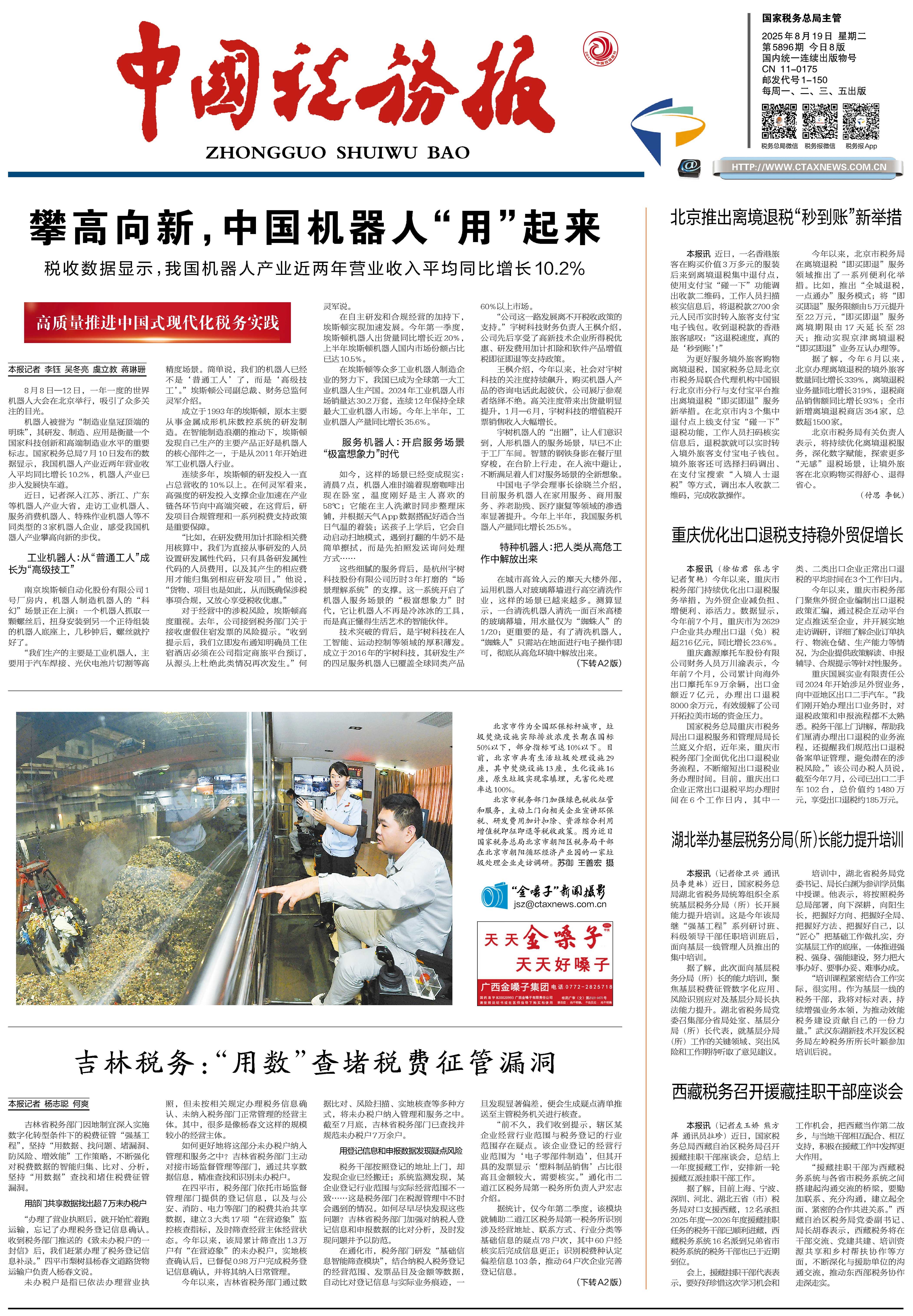 机器人被誉为“制造业皇冠顶端的明珠”,其研发、制造、应用是衡量一个国家科技创新和高端制造业水平的重要标志。国家税务总局7月1